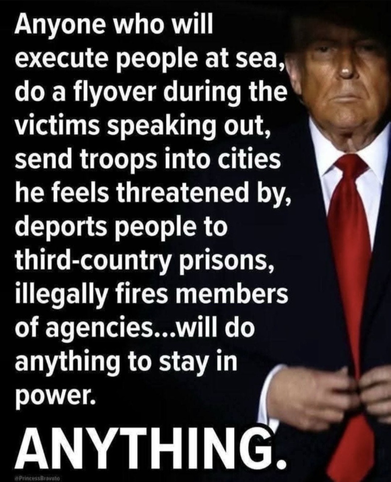 (21,145 posts)On January 20, 2029 (at the latest) a new president and VP, neither of whom will be named Trump, will be sworn in, and they will immediately become commander in chief of the military, and Donald Trumps reign of error and terror will come to an end.