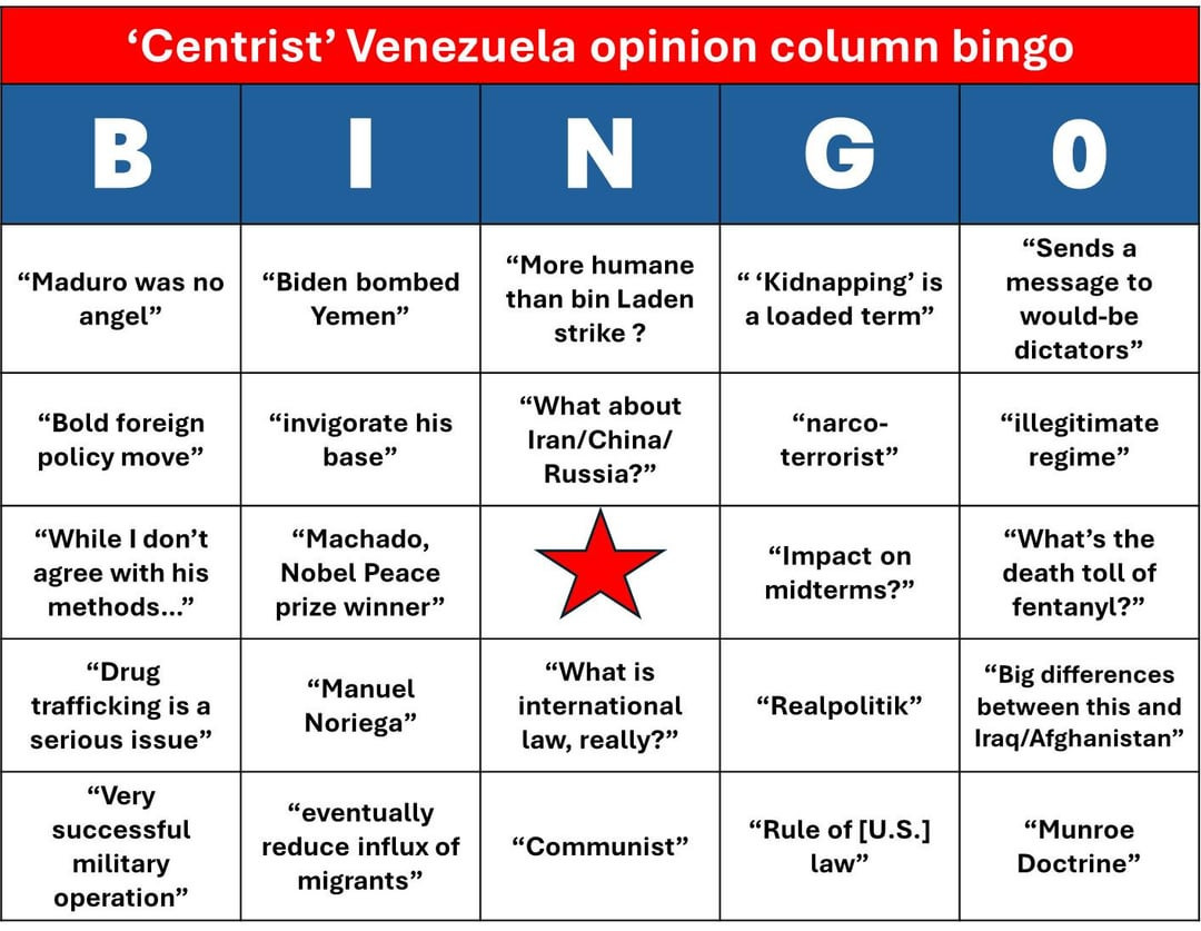 Centrist opinion column bingo: Venezuela edition (Original Post) AStern Jan 3 OP