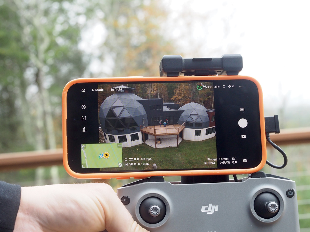 First stop my friend Ari's dome house, seen from his drone above us. He has the larger dome,