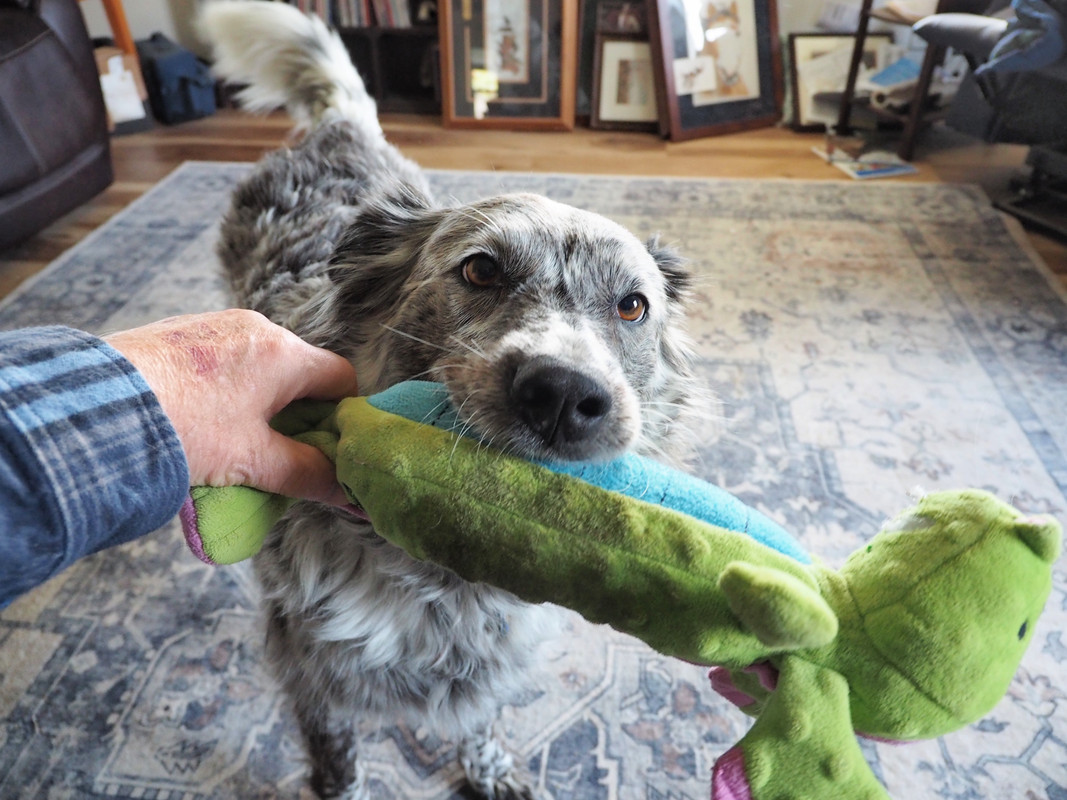Her favorite toy for years, the Dragon still squeaks from time to time.