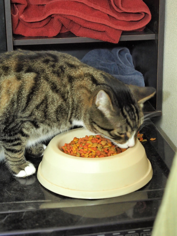 Oops. "Hey, gimme a break. I'm tryin' to eat here."