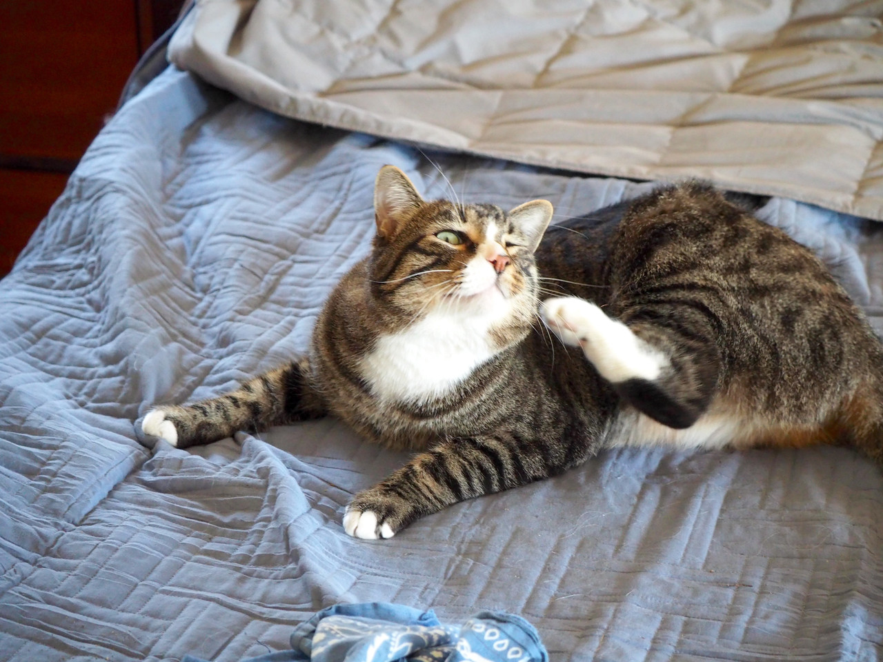From the edge of the bed "Daddy. We gotta talk. What's with this cold weather
