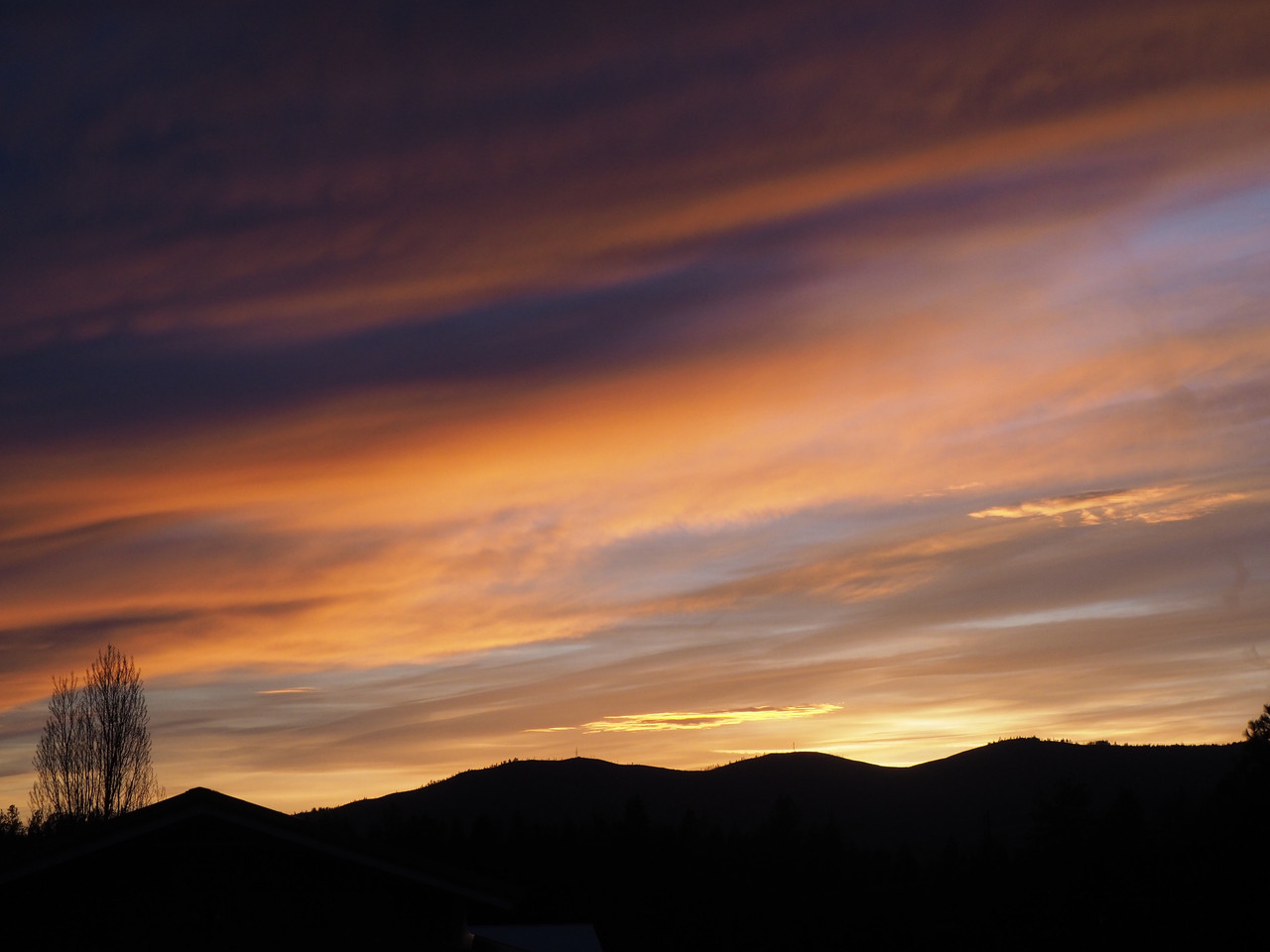 Since I'm in the woods now, I don't see the whole sky anymore unless I go out to the lake shore about a block away but I can see the color through the trees.